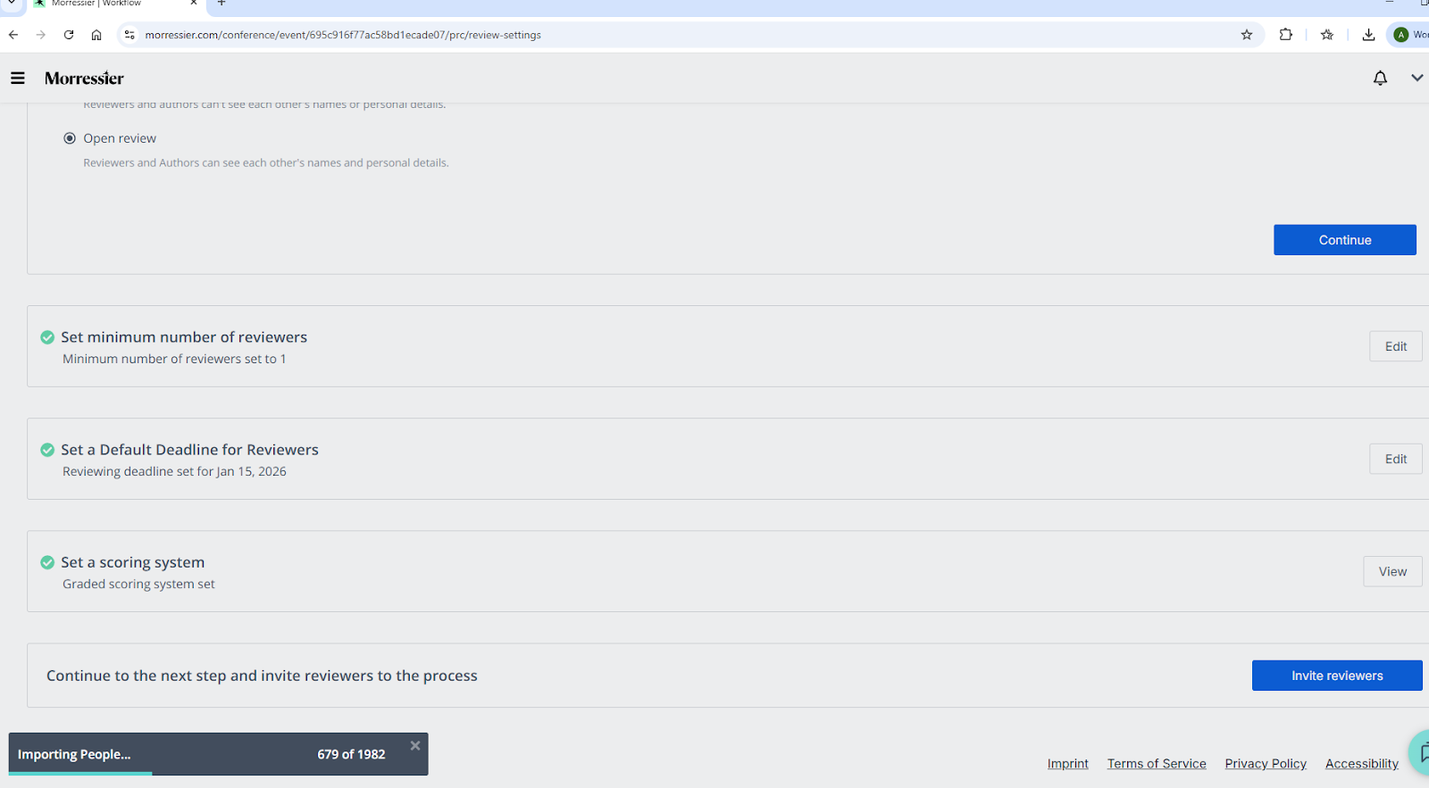 If a reviewer has signed up and activated their Morressier account before an organizer has added them to a bulk reviewer import, then the reviewer will experience no changes to their workflow. The reviewer will receive the topics from the organizer in addition to their other account functionality.